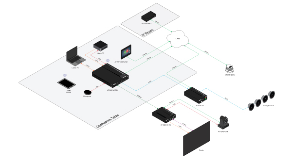 The AT-OCS-900N works directly with the AT-WAVE-101, AT-OME-MS52W, AT-OME-MS42, AT-OME-MH21-CP, AT-OME-MH21, AT-UHD-SW-510W, or Velocity™ to automatically control AV system startup or shutdown based on room occupancy.