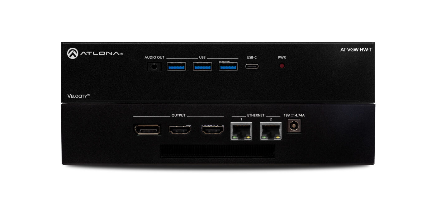 At the heart of every Velocity system is the gateway, a server that provides the processing to serve a single or multiple rooms of AV control and scheduling. Each gateway also includes Velocity Device Manager for configuring and managing Atlona devices.